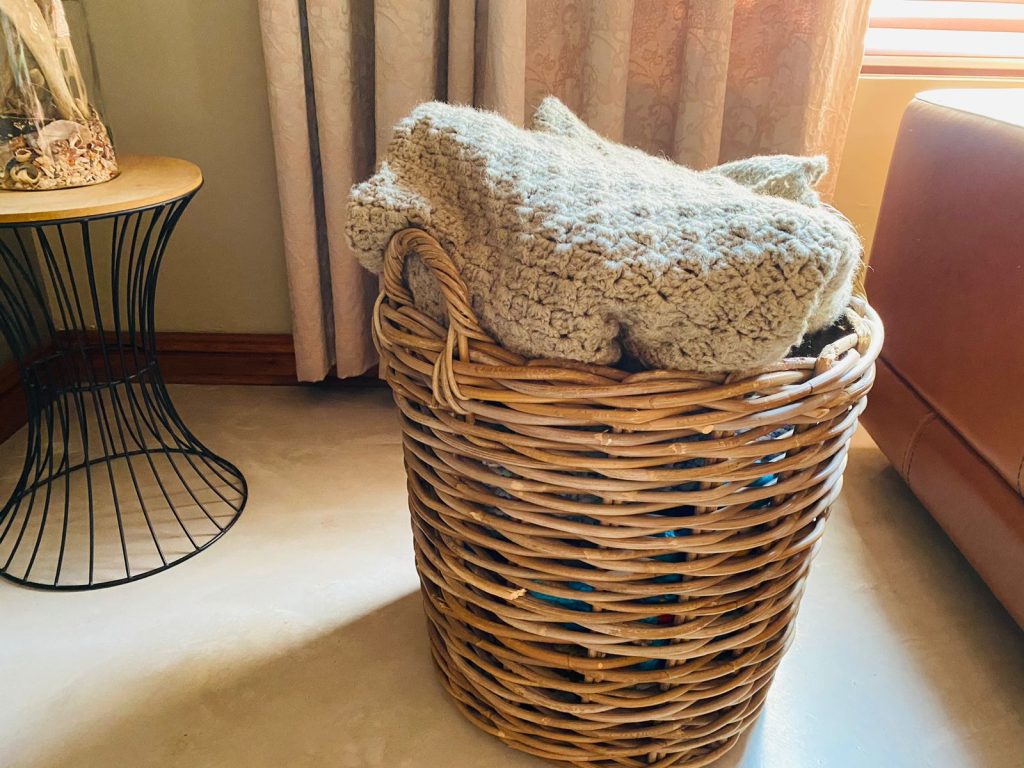 Die aand voor die televisie toe ek die laaste los wolletjies afknip en die kombers oprol om in die mandjie te sit, was daar ʼn klein oorwinninkie. Dis nie net ʼn kombers nie, dis ʼn huisvriend. Met my hekelpen het ek my hele hart oopgeboor en saam met die wol ingeweef sodat die huismense onder om kan inkruip.