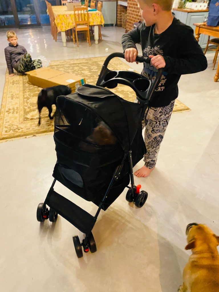 ʼn Rukkie later kom ek op hom af waar hy naarstigtelik en proaktief sit en soek vir ʼn stootwaentjie. ʼn Paar dae later is die waentjie afgelewer en hy het ook ʼn neon bal en “clickers” gekry om die lewe vir sy vriend gemakliker te maak.